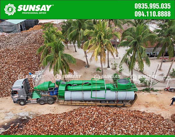 Tháng 6 vừa qua, SUNSAY Việt Nam đã tiến hành vận chuyển và lắp đặt hệ thống dây chuyền máy sấy thùng quay liên tục chuyên sấy mùn dừa đến Hoài Châu – Bình Định.